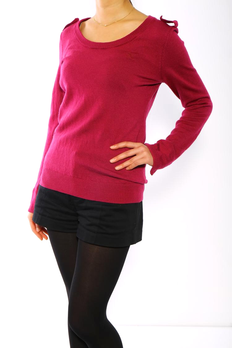 艶やかで優美なセーターが人気ランキング一位に輝きました。新トレンドカラーとして注目されている綺麗なマゼンタパープルの色合いが艶やかで目を惹くセーターです。上質なニット素材を使用しているので、優しい肌当たりが心地良いです。エポーレット(肩章)や袖口のスリットのディテールがデザインのポイントとなっており、オシャレ感を格段と上げています。シンプルな中にもこだわりの強さを感じさせるディテールワークが魅力的です。