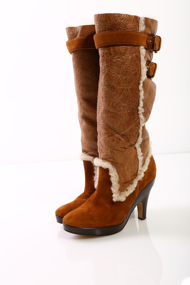 ボアが可愛いロングブーツが人気ランキング一位に輝きました。キャメルの風合いあるレザー素材のロングブーツです。2種類のレザーをパーツで切り替えて、表情豊かに仕上げています。そして何より、可愛らしいアクセントとなっているオフホワイトのボアが視線を引き込みます。さらにトップエンド付近にある2つのベルトもデザイン性を高めるアクセントに。エレガントなヒールも加わり、様々なテイストが上手くミックスされた奥深いデザインです。