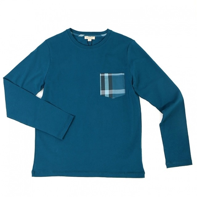 第2位チェック柄ポケットブルーブリーン長袖カットソー